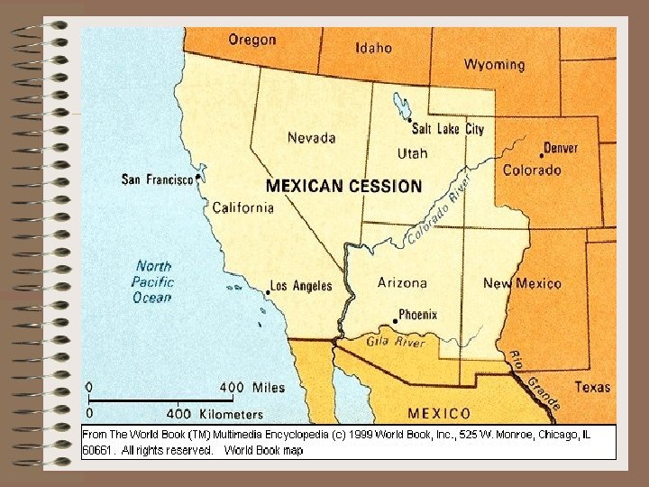 2. end of the war • 1847 – the United States controlled all of New Mexico and California; Battle of San Jacinto ended the war • Treaty of Guadalupe-Hidalgo – Mexico had to give up all of New Mexico and California; United States gave Mexico $15 million and agreed to respect the rights of Spanish-speaking people in those areas • 1853 – United States paid Mexico $10 million for Arizona (known as the Gadsden Purchase)