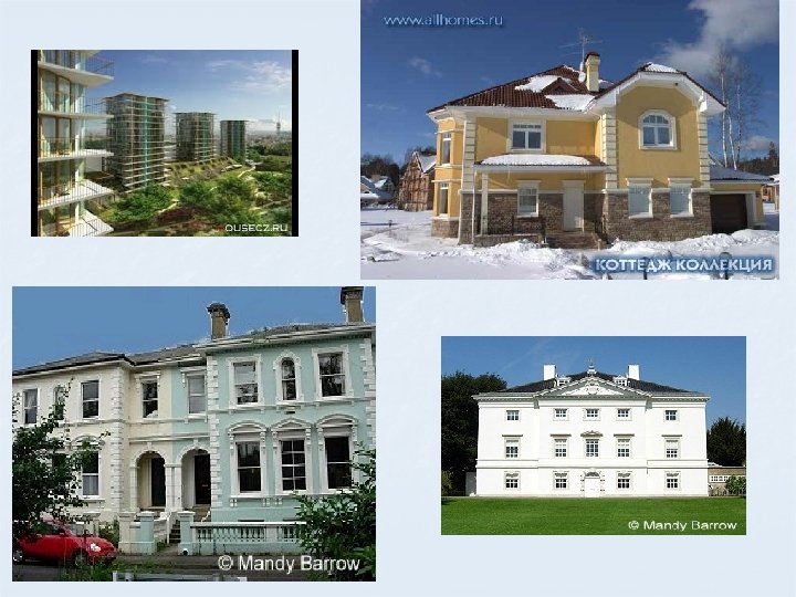 MORE PROVERBS AND SAYIGS CONCERNING HOME n n n There is no place like home. Don’t build your house upon a sand. My house is my castle. People who live in glass houses should never throw stones. Men make houses, women make homes. East or West, home is best. ! Explain how you understand these proverbs and sayings.