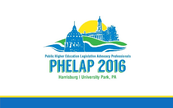 How times have changed • The 1972 Higher Education Amendments ($19 Billion to create Pell Grants and National Direct Student Loans, among others). Republicans voted 89 -76 in favor Democrats voted 218 -180 in favor • The FY 2015 Budget resolution that placed a cap on Pell Grants and the elimination of Pell eligibility for part time students: Republicans voted 219 -12 in favor Democrats voted 0 -193 (to oppose) PHELAP 2016 • Harrisburg | University Park, PA
