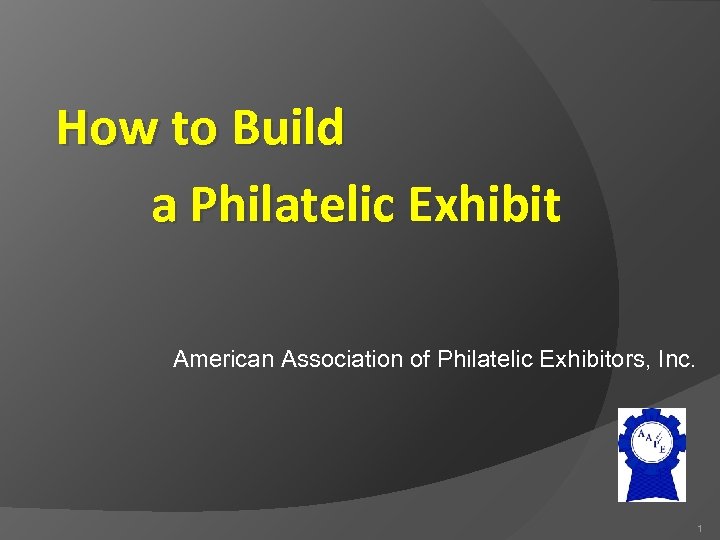 How to Build a Philatelic Exhibit American Association of Philatelic Exhibitors, Inc. 1