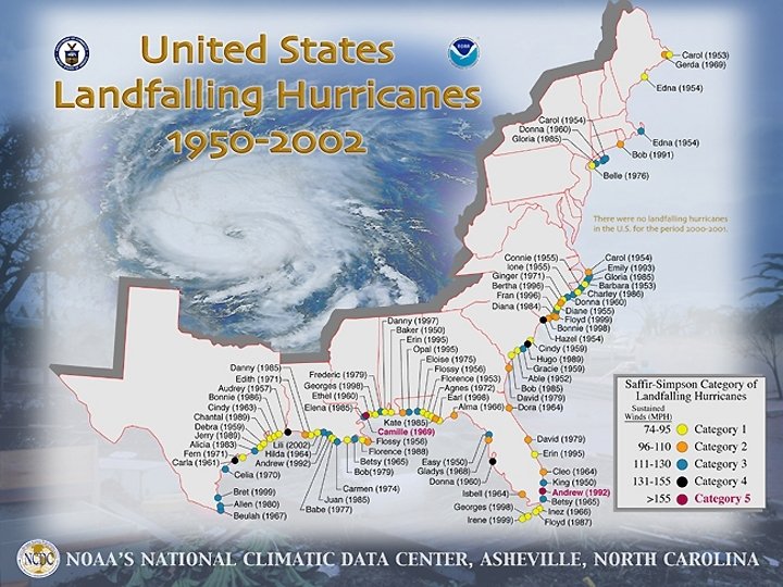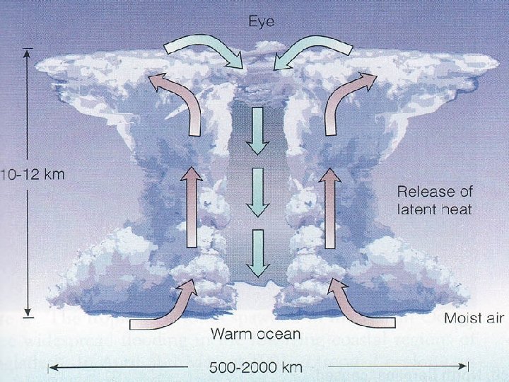 Hurricanes &Typhoons (Tropical Cyclones) When extremely hot ocean surface temperatures (>26 o. C) cause hot, moist surface air, huge clusters of thunderstorms develop at sea. If uplift gets extreme, these can organize into a gigantic Low with spiral storm lines, and winds exceeding 74 mph, a Tropical Cyclone, aka Hurricane