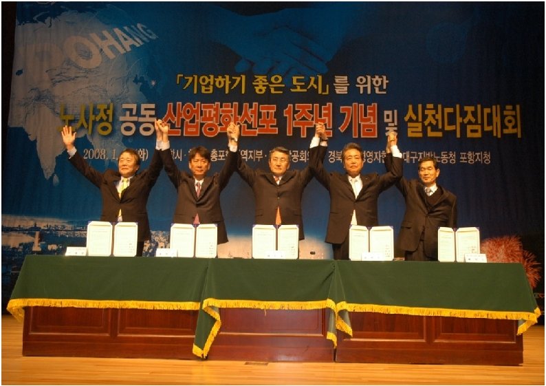 4. Competent human resources and stable labor-management relations First declaration of labor-management-government cooperation in Korea Promise of full cooperation among labor, management and the government in January 2007 Creation of a business-friendly environment by harmonizing labor and management