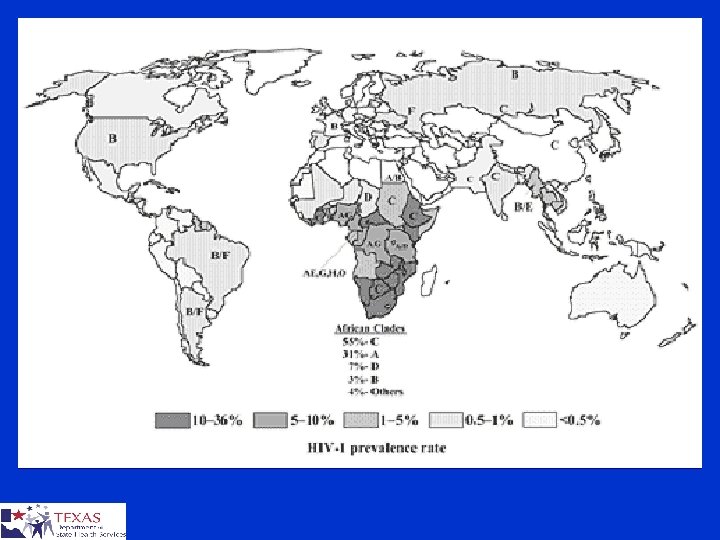 HIV Subtypes § HIV isolates are classified into three different groups ¤ Major group (M) ¤ Outlier group (O) ¤ Non-M / non-O (N) § Groups N and O restricted to West Africa § Based on the analysis of the envelope gene, there at least nine pure subtypes or clades A-D, F-H, J and K