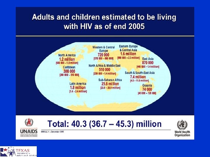 Awareness of HIV Status among Persons with HIV, United States Number HIV infected Number unaware of their HIV infection Estimated new infections annually 1, 039, 000 – 1, 185, 000 252, 000 - 312, 000 (24%-27%) 40, 000 Glynn M, Rhodes P. 2005 HIV Prevention Conference