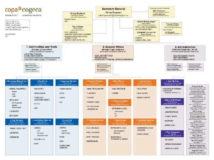Internal organisational structure Working Parties Joint POCC / CCC Secretariat of COPA and COPA Praesidium COGECA European Commission, Council of Ministers, European Parliament, Permanent Representations, press, etc.