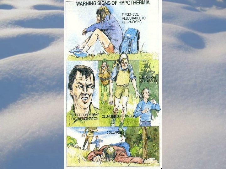 Speed of cooling • Acute – typically immersion. – Energy reserves intact, very little fluid shift – Rewarm if can be removed from cold • Subacute (exhaustion) – e. g. lost hill walker – Cold is less severe, hypothermia does not develop until energy reserves deplete – Spontaneous rewarming less likely to be effective