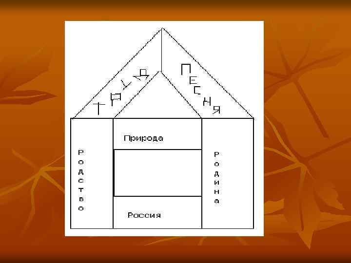 n n Какая фигура получится, если добавить в основание ещё одно слово? (Дом). Какое слово необходимо? Что является для нас, русских людей, домом? (Россия).