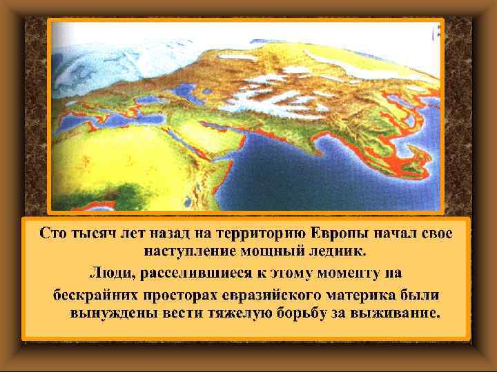 В условиях длинной и холодной зимы люди начали шить одежду из шкур животных, из их костей они возводили каркас для жилища, который покрывали теми же шкурами. u Изменились и орудия труда - они стали более совершенными. u
