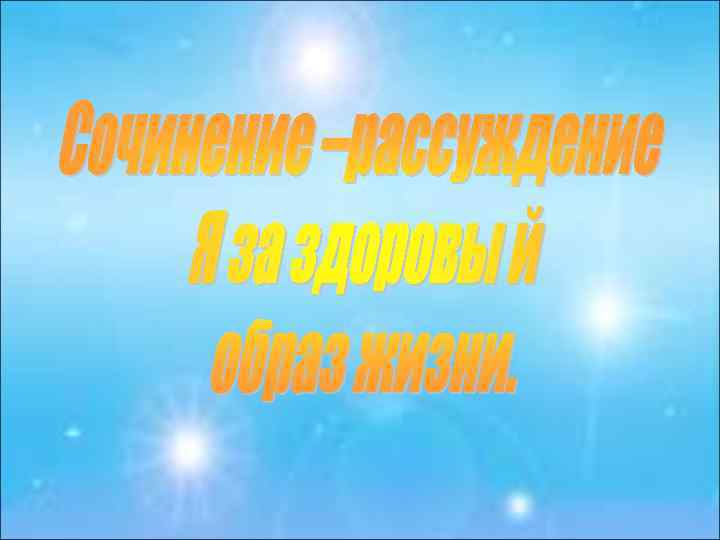 Что такое здоровый образ жизни? Для каждого из нас слово «здоровый» имеет разное значение…. . Как соблюдать здоровый образ жизни? Во-первых, это …. . Во-вторых, это …. И, в-третьих, …. Что дает здоровый образ жизни? Это, конечно же, …. . Я думаю, тот, кто ведет правильный образ жизни, Мой совет Я призываю всех… Ребята, давайте …. . …