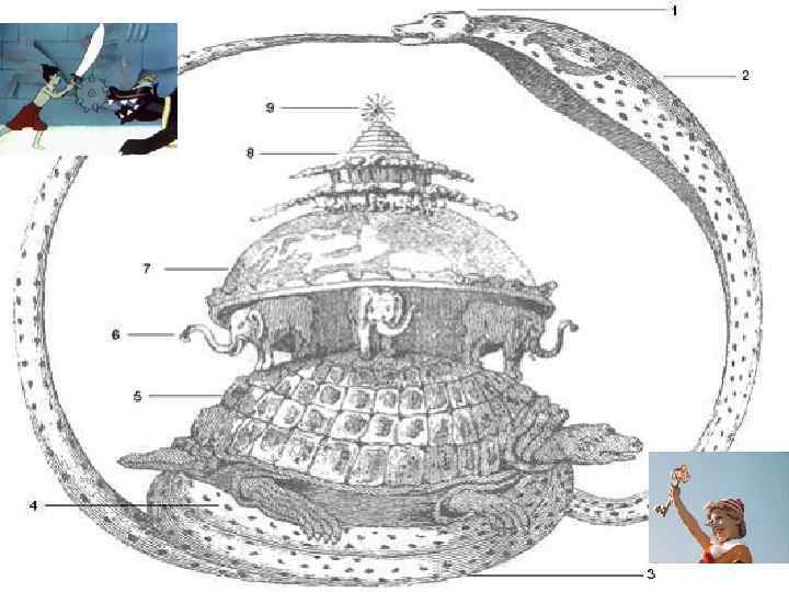 Древние славяне также полагали, что наша Земля имеет плоскую форму и плавает среди безбрежного океана. По преданиям, она покоится на трех огромных китах и тридцати маленьких.