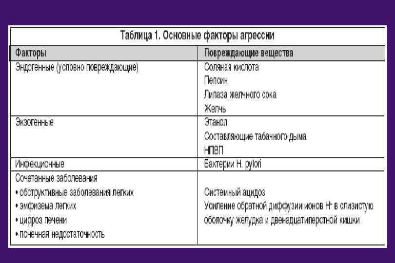 Патогенез язвенной болезни · Решающее звено – дисбаланс между факторами «агрессии» и факторами «защиты» слизистой оболочки желудка и двенадцатиперстной кишки