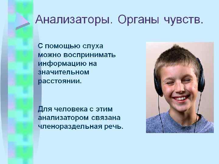 По локализации рецепторов анализаторы делятся на экстероцептивные и интероцептивные. Экстероцептивные В первом случае источники стимуляции находятся вне организма, Интероцептивные во втором — информация поступает от внутренних систем и органов. Извне на организм действуют зрительные, слуховые, тактильные, вкусовые, обонятельные стимулы, а также сила тяготения