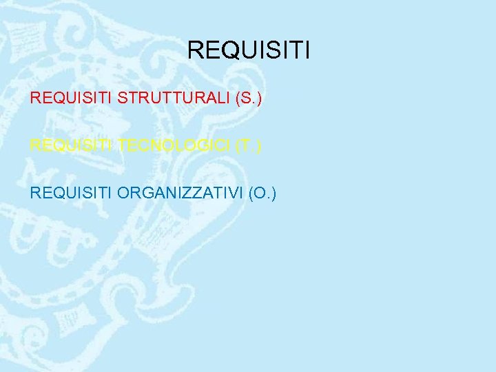 REQUISITI STRUTTURALI (S. ) REQUISITI TECNOLOGICI (T. ) REQUISITI ORGANIZZATIVI (O. )