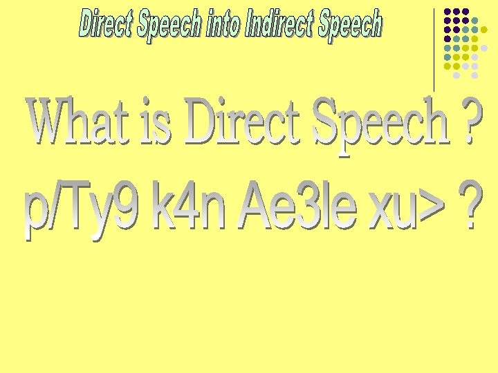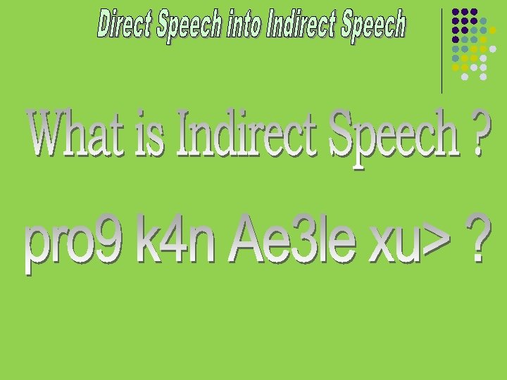 n+ktadx. Rk x. Bdoma> ferfar n. Ice p/ma`e krva. . Direst Speech Indirect Speech This That These Those Here There Today That day Tomorrow The next day Yesterday The previous day, The day before Next Week The following week Last Week The previous week To night That night Ago Before Now Then Come Go Thus So