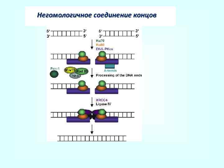 Эксцизионная репарация оснований Ионизирующее излучение (одцепочечные разрывы Окисление, метилирование и дезаминирование оснований ДНКгликозилазы PARP 1 Спонтанный гидролиз Х XRCC 1 PNK APE 1 XRCC 1 Pol +d. GTP PCNA Pol /ε +4 d. NTP FEN 1 ДНКлигаза III +ATP ДНКлигаза I +ATP