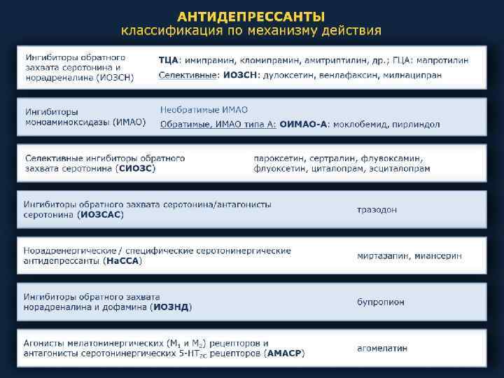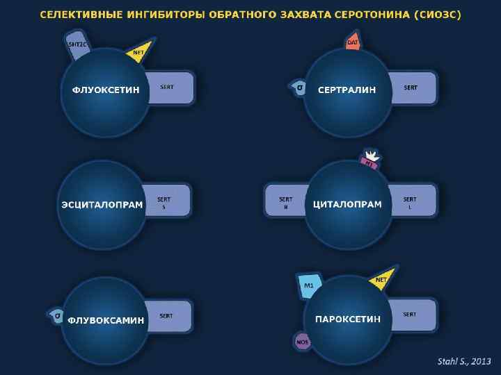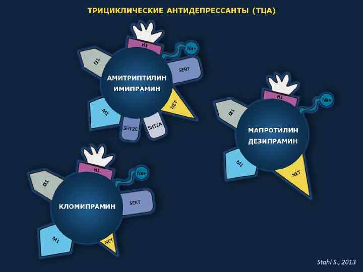 Эволюция антидепрессантов с пе От ТЦА 1 H 1 5 -HT переносимость NA р к Моноселективным препаратам ACh TCA о ен (+) эффективность СИОЗС (-) К препаратам с эф ф двойным механизмом ек т ив СИОЗСНност ь 5 -HT NA (+ ) 5 -HT