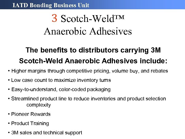 IATD Bonding Business Unit 3 Scotch-Weld™ Anaerobic Adhesives Launch Presentation: Distributor Principal