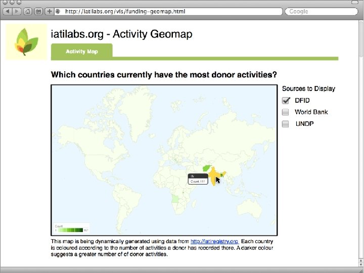 IATI Registry Conversion Users 4. Basic visualisation. To demonstrate how IATI data can be simply made accessible