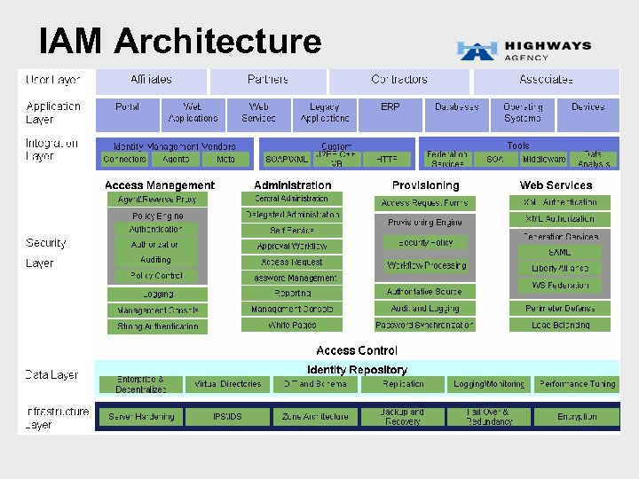 The Disconnected Reality • Authentication • Authorisation • Identity Data NOS • Authentication • Authorisation • Identity Data Web Apps • Authentication • Authorisation • Identity Data Infrastructure Application • Authentication • Authorisation • Identity Data COTS Application • Authentication • Authorisation • Identity Data In-House Application • Authentication • Authorisation • Identity Data Enterprise Directory HR System In-House Application • “Identity Chaos” • Lots of users and systems required to do business • Multiple repositories of identity information; Multiple user IDs, multiple passwords • Decentralised management, ad hoc data sharing