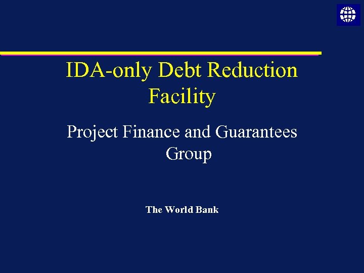 IDA-only Debt Reduction Facility Project Finance and Guarantees Group The World Bank