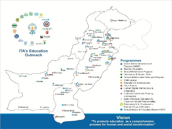 Vision & Mission of ITA Pakistan Vision “To promote education as a comprehensive process for human and social transformation” Mission Statement To actively pursue universal access and standard setting in education as a comprehensive learning experience for human development By creating contemporary education systems for all children without discrimination due to gender, class, age, religion, color and ethnicity And, endeavoring to address educational bottlenecks through timely resource mobilization and influencing of public policy 3