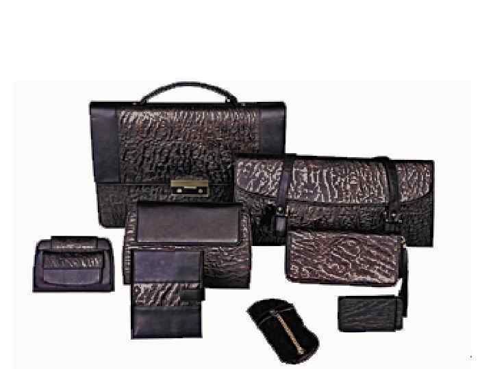 Идентификация применяемых материалов • из натуральных кож – галантерейных, обувных, шорно-седельных; • из искусственных и синтетических кож; • из пленочных материалов; • из текстильных материалов; • из соломки, картона, пластмасс.