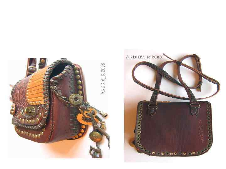 Соединение деталей кожгалантереи • Вобрезку – края после соединения обрезают и окрашивают, иногда оплетают. • Взагибку - края одной детали огибают край другой детали. • Воблямовку - края обшивают полоской кожи или ткани. • Выворотные - детали сшивают лицом, а затем выворачивают. Могут быть с кедером или без него.