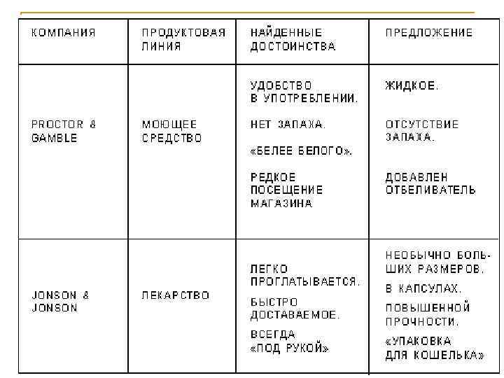 n n n потребители, демонстрирующие высокую лояльность к определенной марке продукта; потребители, которые могут переключиться на другую марку и уменьшить использование данной марки; случайные потребители, число которых можно увеличить, используя специальные методы продвижения продукта; случайные потребители, которые могут уменьшить степень потребления из-за действий конкурентов; не потребители данной марки, которые могут ее покупать при условии ее модификации; не потребители с сильным отрицательным отношением к данной марке.