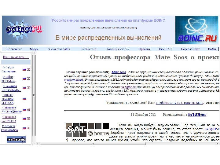 SAT@home: Most Successful BOINC Project in Russia Project SAT@home – research project aimed at solving hard combinatorial problems reduced to SAT problems http: //sat. isa. ru/pdsat/ Institute for System Dynamics and Control Theory of Siberian Branch of Russian Academy of Sciences (ISDCT SB RAS) A. Semenov, O. Zaikin DEGISCO WP 4 19/03/2018 54 54