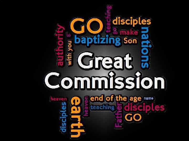 идите, научите все народы, крестя их во имя Отца и Сына и Святого Духа. (Мф. 28: 16 идите по всему миру и проповедуйте Евангелие всей твари. Мк. 16: 18) проповедану быть во имя Его покаянию и прощению грехов во всех народах, начиная с Иерусалима. Вы же свидетели сему. . Лук. 24: 46 и будете Мне свидетелями в Иерусалиме и во всей Иудее и Самарии и даже до края земли Деян. 1: 4