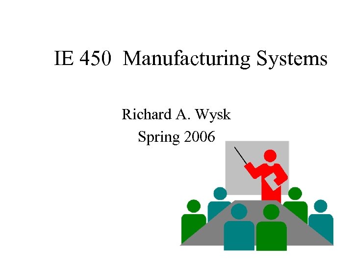 IE 450 Manufacturing Systems Richard A. Wysk Spring 2006