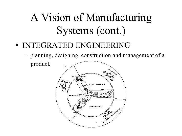A Vision of Manufacturing Systems (cont. ) • INTEGRATED ENGINEERING – planning, designing, construction and management of a product.