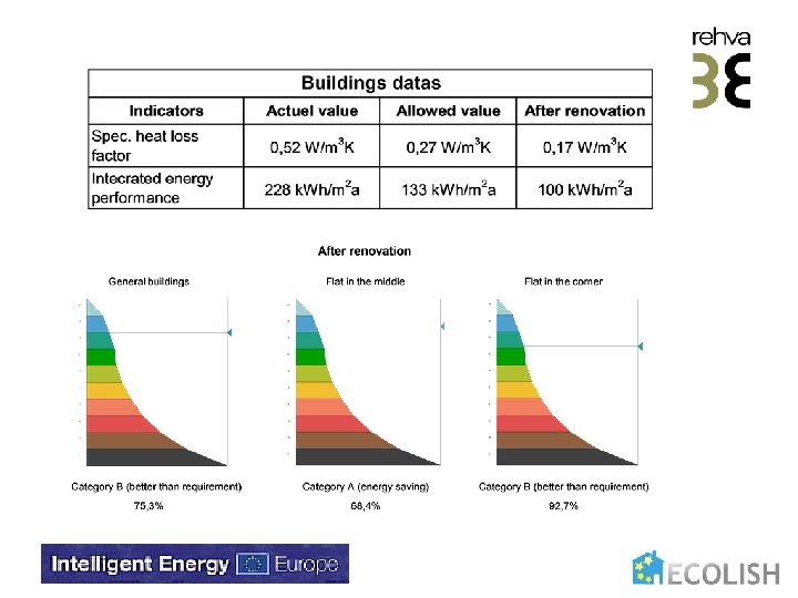 Energy certification based on current situation General building Category F (average) Flat in the middle Category E (better than average) Flat in the corner Category H (bad)