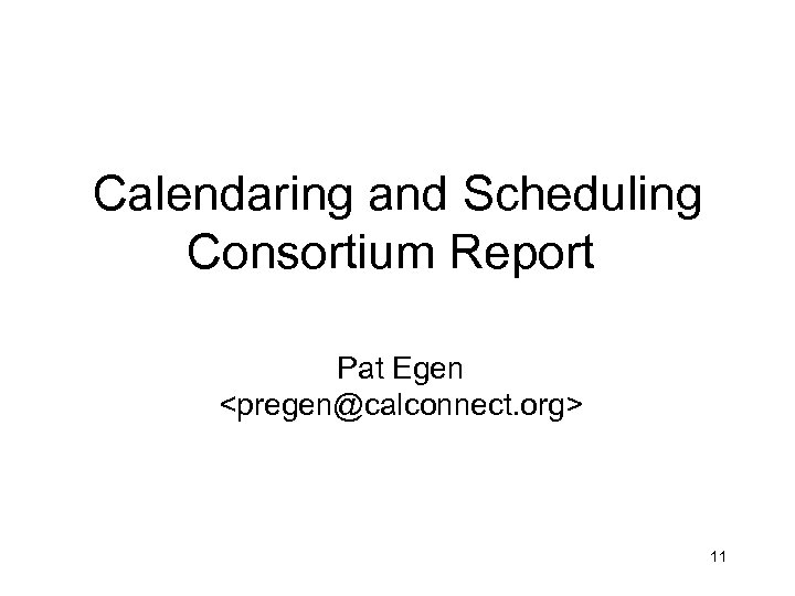 Calendaring and Scheduling Consortium Report Pat Egen <pregen@calconnect. org> 11