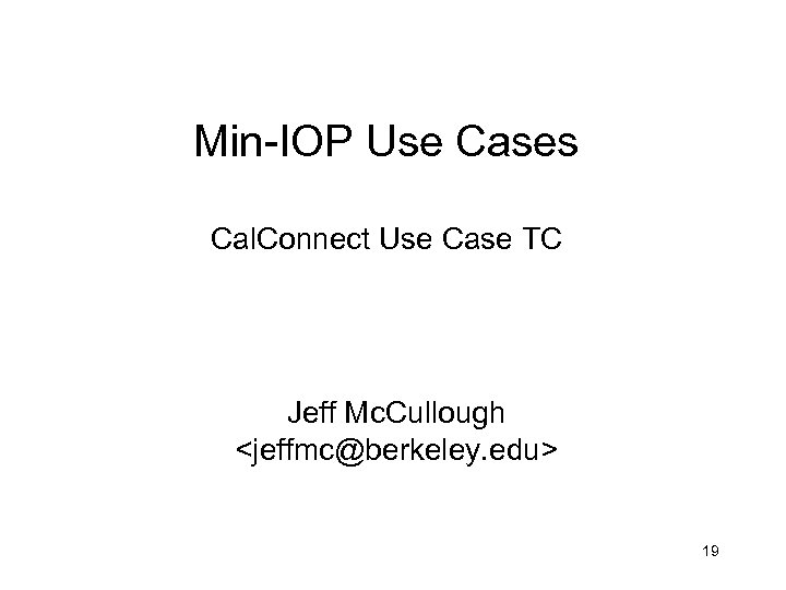 Min-IOP Use Cases Cal. Connect Use Case TC Jeff Mc. Cullough <jeffmc@berkeley. edu> 19