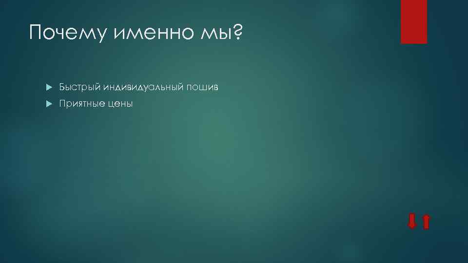 Почему именно мы? Быстрый индивидуальный пошив Приятные цены