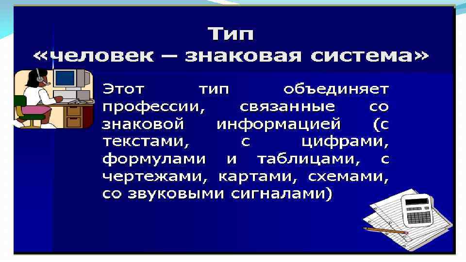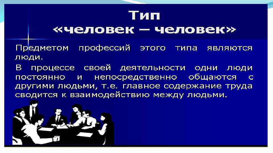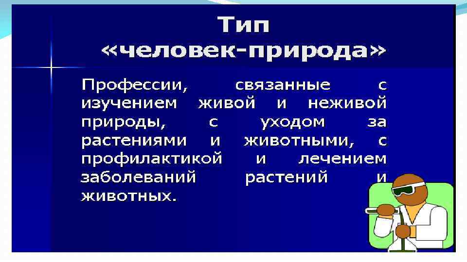 В мире 50 тысяч профессий, в зависимости от того, кем работает человек, профессии делятся на 5 групп: 1. Человек-живая природа 2. Человек- техника и неживая природа 3. Челоек-человек 4. Человек- знаковая система 5. Человек- художественный образ