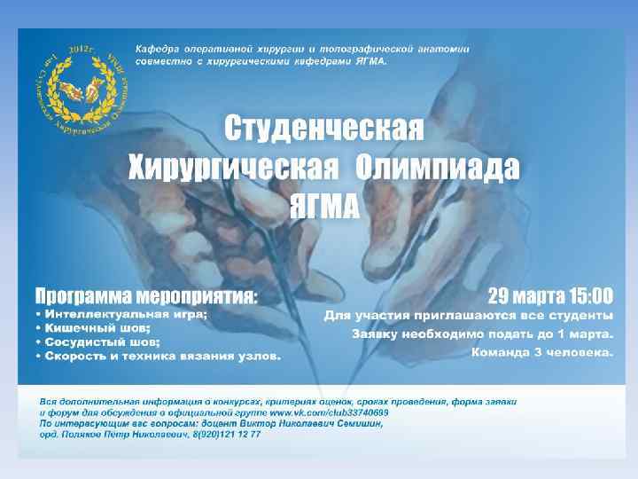 «II-ая Студенческая Хирургическая Олимпиада ЯГМА» 4 -5 апреля 2013
