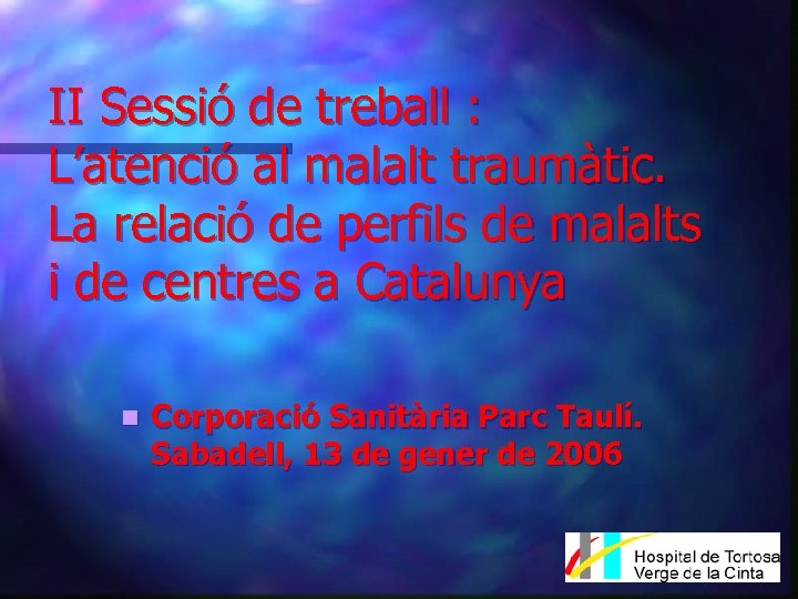II Sessió de treball : L’atenció al malalt traumàtic. La relació de perfils de malalts i de centres a Catalunya n Corporació Sanitària Parc Taulí. Sabadell, 13 de gener de 2006