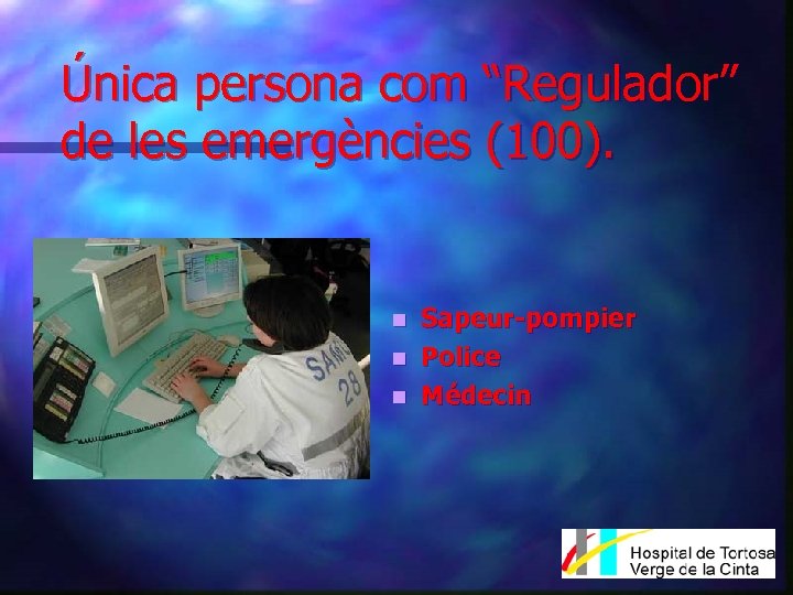 Única persona com “Regulador” de les emergències (100). Sapeur-pompier n Police n Médecin n