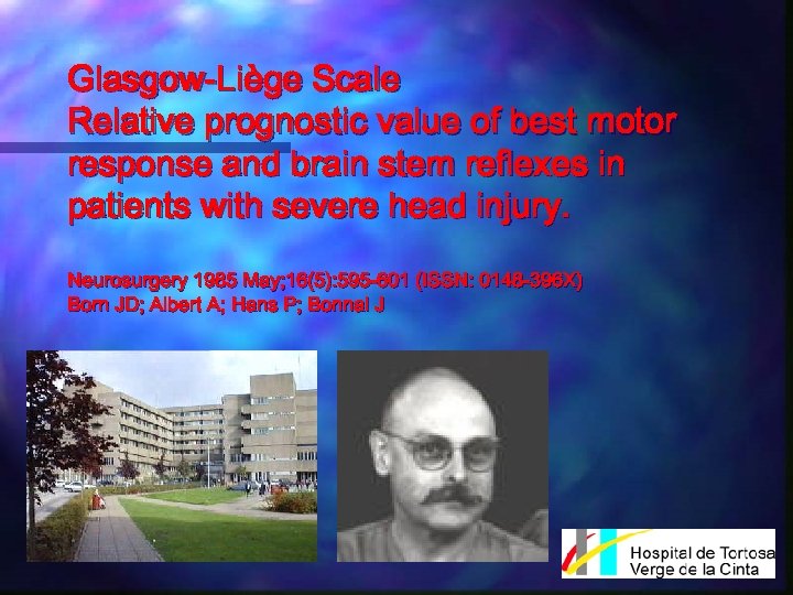 Glasgow-Liège Scale Relative prognostic value of best motor response and brain stem reflexes in patients with severe head injury. Neurosurgery 1985 May; 16(5): 595 -601 (ISSN: 0148 -396 X) Born JD; Albert A; Hans P; Bonnal J