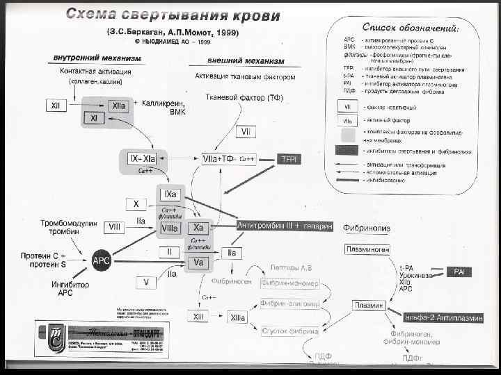 • В 1912 г. T. R. Fraser, J. A. Gunn впервые детально изучили этот процесс при отравлении змеиным ядом, правильно связав фазу гипокоагуляции с ее дефибринированием. • И, наконец, в 1948 г. индийские исследовате ли. M. LAhuja, A. G. Brooks впервые показали, что определенные раз новидности ДВС синдрома предотвращаются предварительным или очень ранним введением гепарина. • Большой вклад в развитие учения о ДВС синдроме внесли D. Mc. Kay и Ch. L Schneider. • D. Mc. Kay разработал концепцию о полиэтиологичности ДВС синдрома, считая его «промежуточным механизмом заболева ний» , от выраженности которого зависит эффект заболевания на организм человека. Макацария А. Д. , Мищенко А. Л. , Бицадзе В. О. , Маров СВ. «Синд ром диссеминированного внутрисосудистого свертывания крови в аку шерской практике» . Триада Х, 2002.