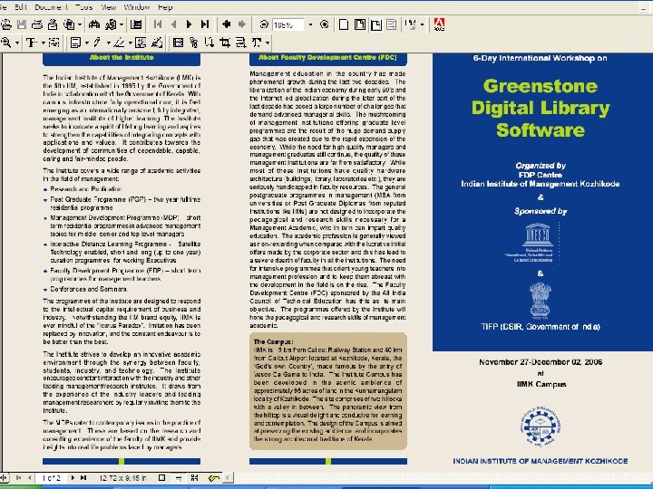 Acknowledgement • Prof. Ian Witten, Director, Greenstone Digital Library Project, University of Waikato, New Zealand • Team Greenstone, NZ • UNESCO • ICDL 2006 • Ministry HRD, Government of India • IIM Kozhikode