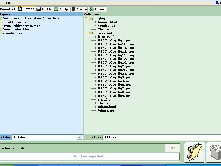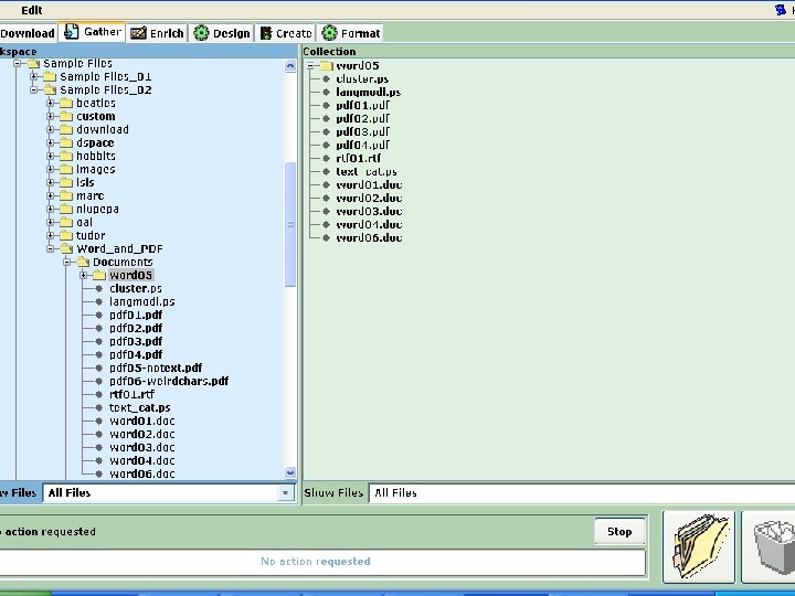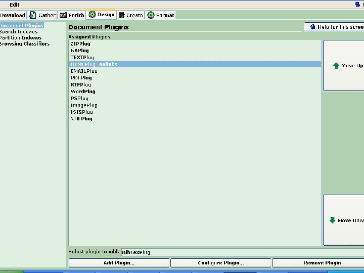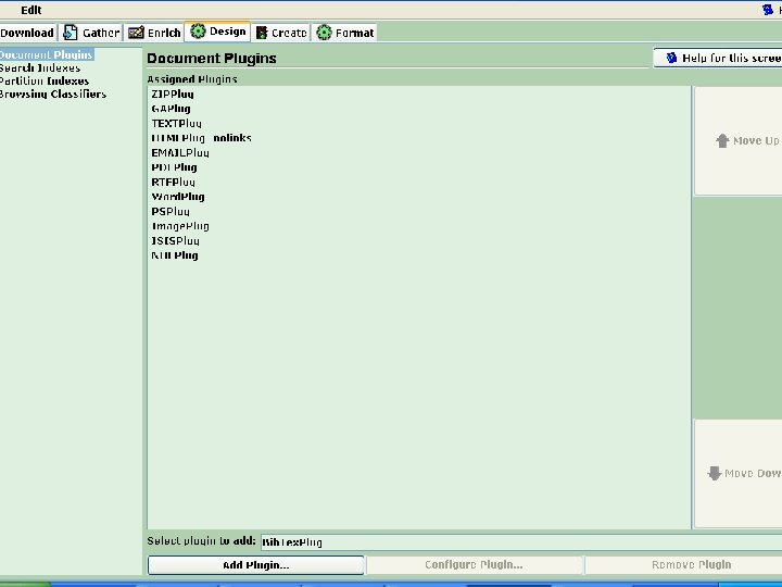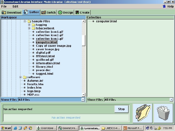 GLI Functions • • Establish new collection (or work on old) Select files to include in collection (Gather) Enrich files with metadata (Enrich) Select Plugins, Indexes, Classifiers (Design) Build Collection (Create) Customize Appearance Preview Collection