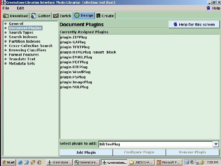 Features of Greenstone • Open Source Philosophy • Interfacing & Content Delivery via Web • Multi S/W Platform • Multi Lingual Support • Multi Formats • Structured Metadata in XML using DC • Metadata Extraction • Searching & Browsing • Plug-ins for Documents • • • Full-text mirroring Text Level Penetration Data Compression Password protection Administrative Functions Concurrent & Dynamic Content Development Uniform Presentation Publishing on CDROMs International Presence