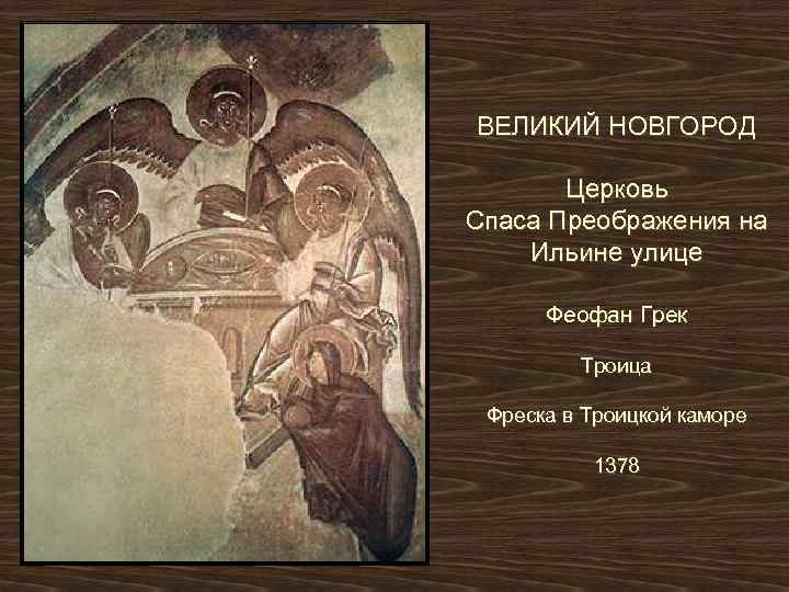 ВЕЛИКИЙ НОВГОРОД Церковь Спаса Преображения на Ильине улице Феофан Грек Троица Фреска в Троицкой каморе 1378
