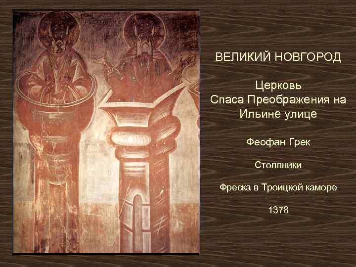 ВЕЛИКИЙ НОВГОРОД Церковь Спаса Преображения на Ильине улице Феофан Грек Столпники Фреска в Троицкой каморе 1378