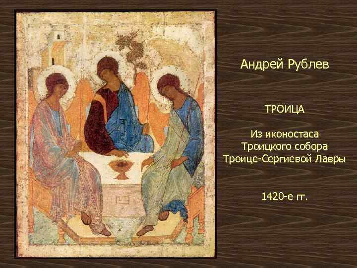 Андрей Рублев ТРОИЦА Из иконостаса Троицкого собора Троице-Сергиевой Лавры 1420 -е гг.