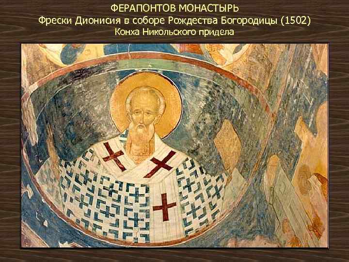 ФЕРАПОНТОВ МОНАСТЫРЬ Фрески Дионисия в соборе Рождества Богородицы (1502) Конха Никольского придела
