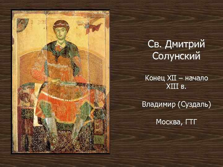 Св. Дмитрий Солунский Конец XII – начало XIII в. Владимир (Суздаль) Москва, ГТГ